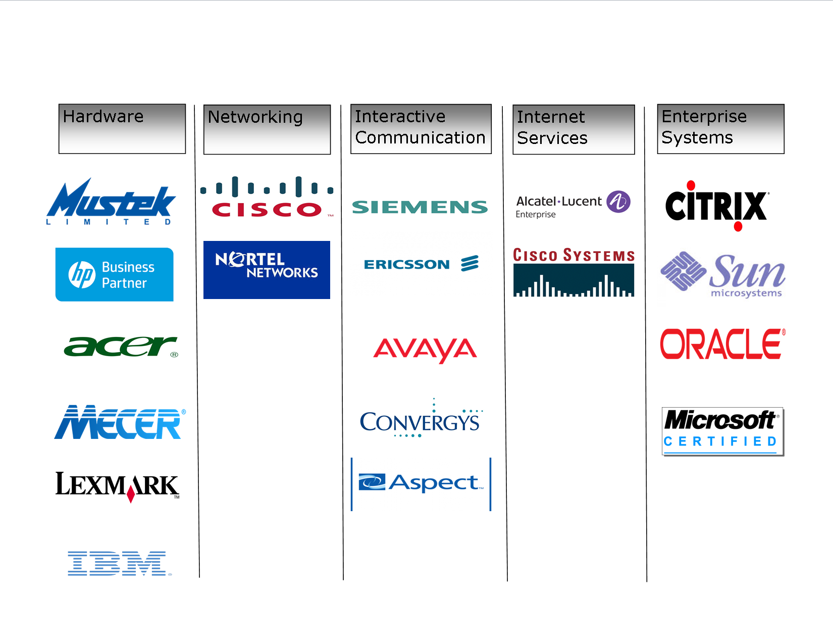 We provide all ICT end-to-end solutions, we supply Software, Hardware, Firmware as well as Middleware, we do all implementations, support and maintenance of the above mentioned that we supply.